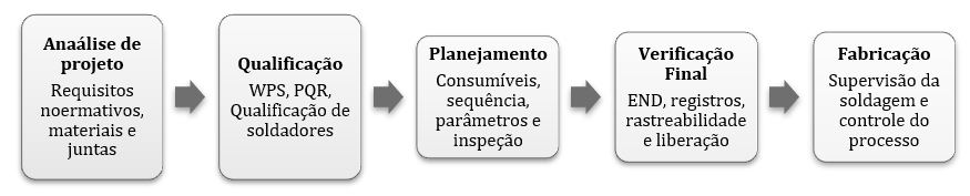 O fluxo mostrado na Figura 2 evidencia que a coordenação da soldagem não se limita à etapa de execução. Pelo contrário, ela começa na análise dos requisitos de projeto e segue até a verificação final e a liberação do produto, abrangendo planejamento, qualificação, supervisão do processo, inspeção e fechamento documental.