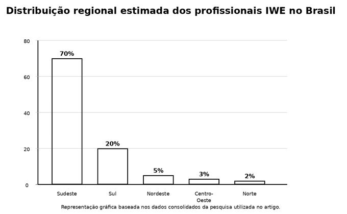 Figura 3 – Distribuição regional estimada dos profissionais IWE no Brasil. Fonte: Dados consolidados da pesquisa utilizada nos documentos anexos.