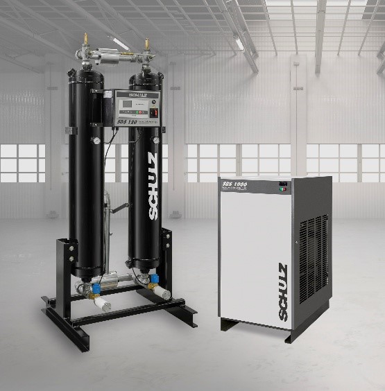 Os sistemas de tratamento de ar comprimido têm papel crítico na qualidade e confiabilidade dos processos industriais. Nesse contexto, a Schulz oferece soluções completas com secadores por refrigeração (linhas SRS e SRS Lean) e por adsorção (linha SDS), atendendo diferentes níveis de exigência de pureza e ponto de orvalho. Os secadores por refrigeração das linhas SRS e SRS Lean são indicados para aplicações industriais gerais, onde é necessário remover a umidade do ar comprimido com eficiência e confiabilidade. Esses equipamentos operam com ponto de orvalho de 5° e 10°, respectivamente, suficiente para eliminar condensados e garantir a qualidade do ar na maioria dos processos produtivos. Já os secadores por adsorção da linha SDS são destinados a aplicações críticas que exigem ar extremamente seco, como processos hospitalares, eletrônicos, geração de gases e instrumentação. Esses sistemas atingem pontos de orvalho muito mais baixos, podendo chegar a até -40 °C, o que garante máxima remoção de umidade e proteção de equipamentos sensíveis.